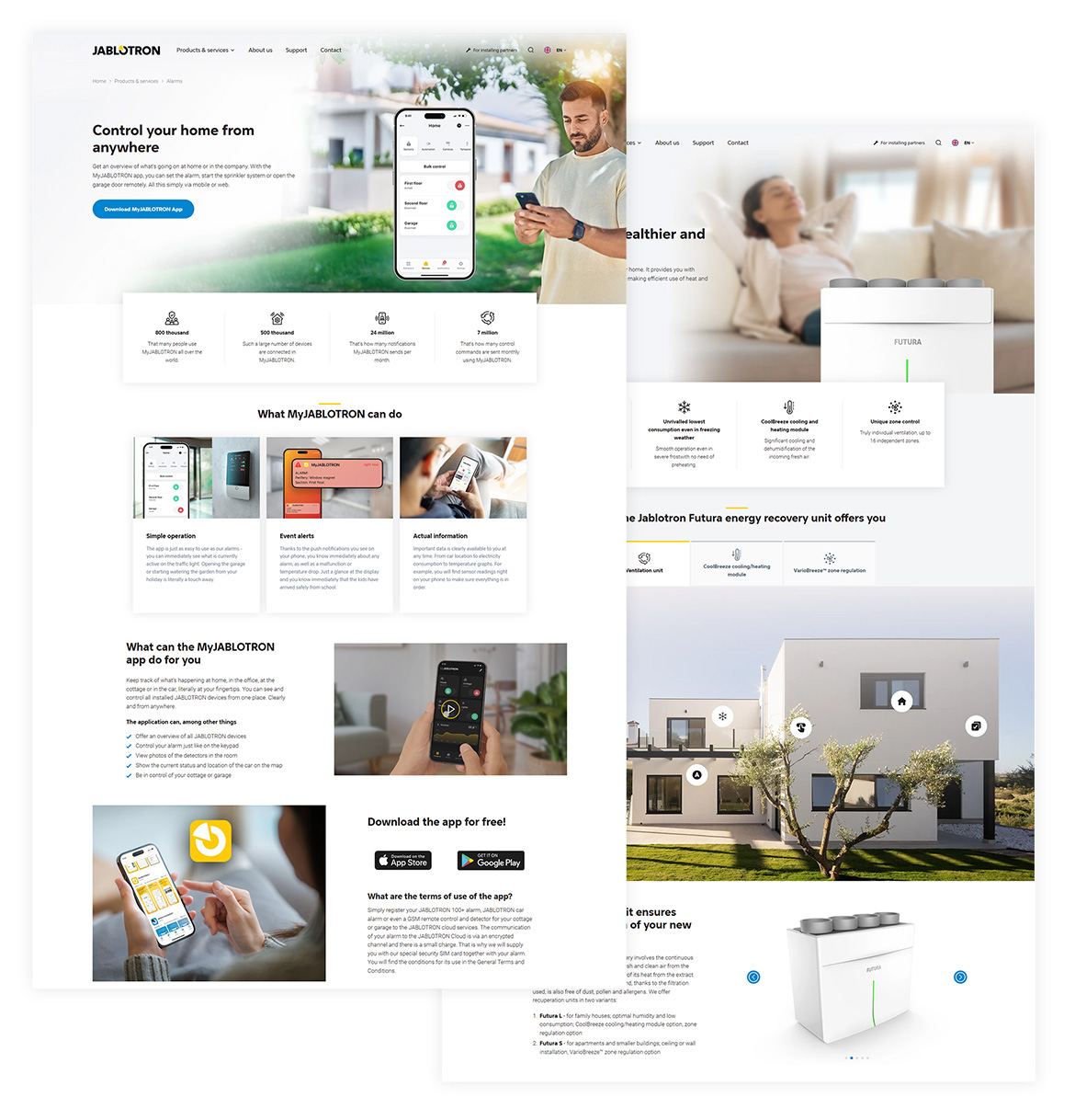 Online aktivity skupiny JABLOTRON byly už tak rozsáhlé, že si vyžádaly sjednocení všech webů pod jedinou platformu a moderní design. Přesně to jsme zařídili.
