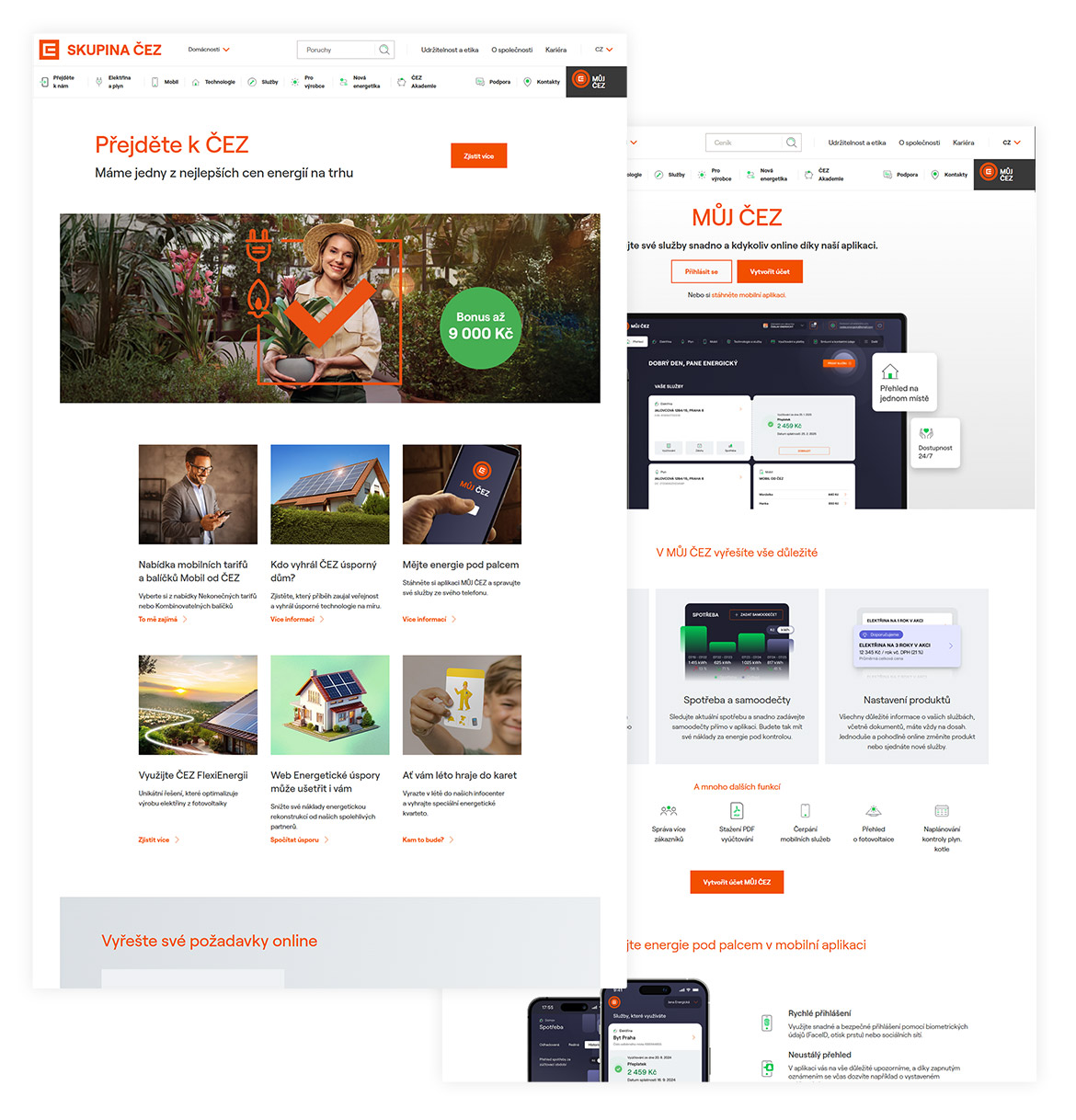 Příklad našeho klienta: Skupina ČEZ má díky našemu řešení desítky webů pod jedinou administrací a také nejrozsáhlejší intranet v Česku pro více než 15 000 zaměstnanců.