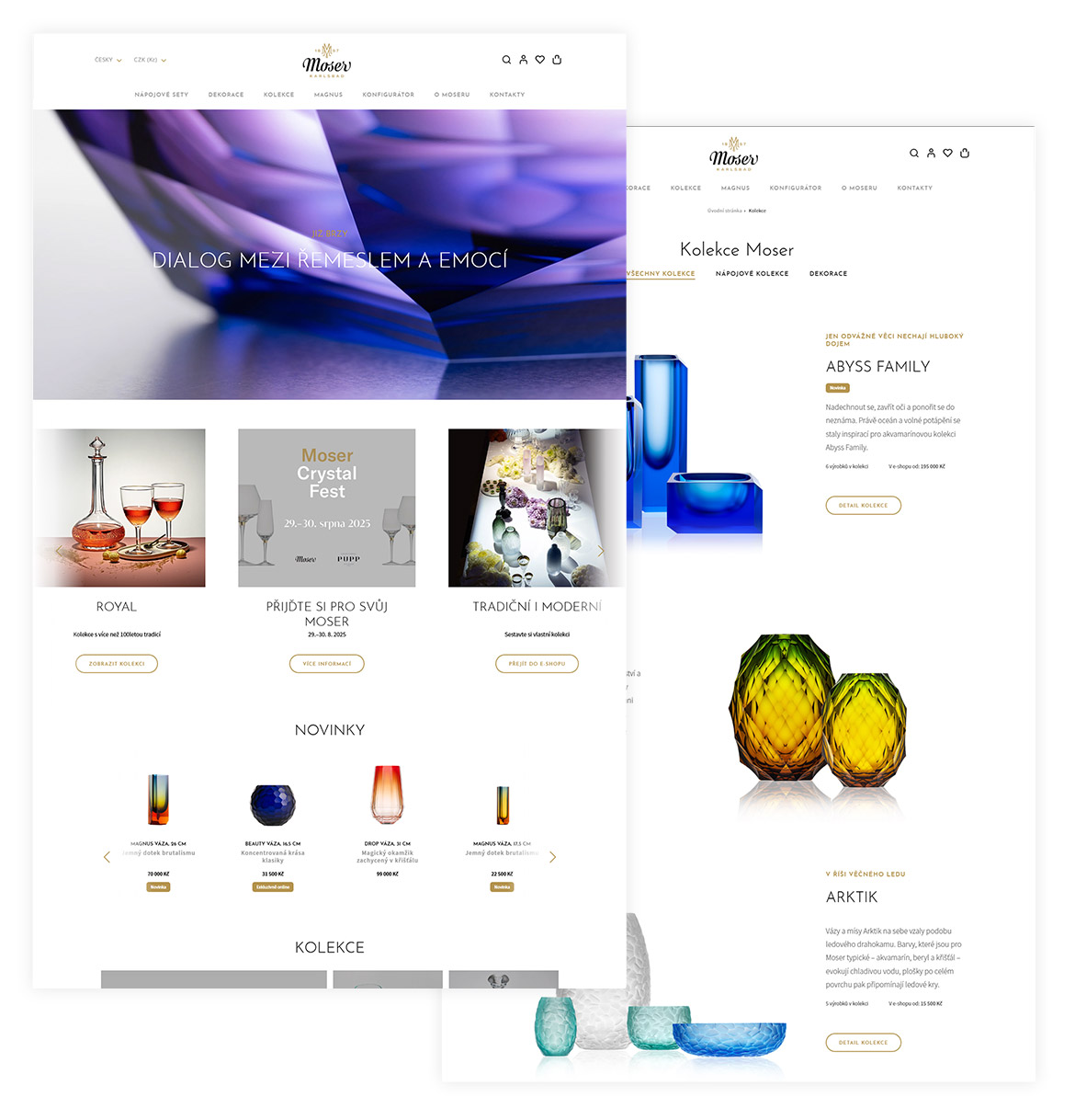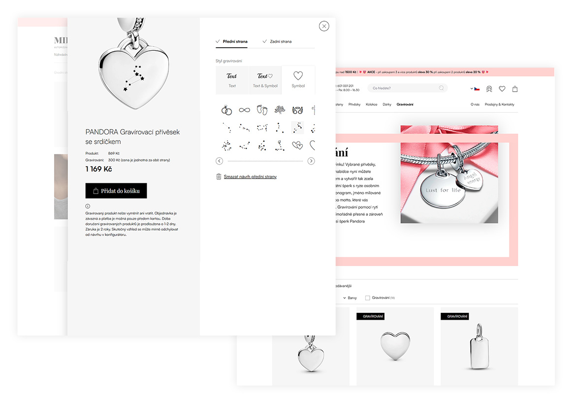 Příklady našich klientů: Světoznámá sklárna Moser využívá náš unikátní online konfigurátor produktů s možností prodeje po celém světě a v několika jazycích. Novinkou je třeba i Milagro s vlastním konfigurátorem šperků Pandora.